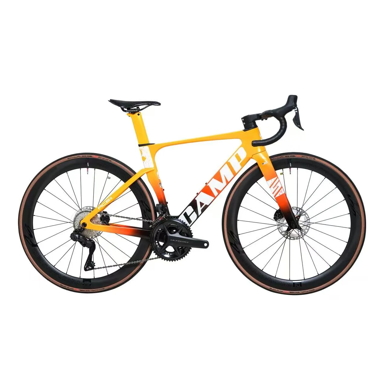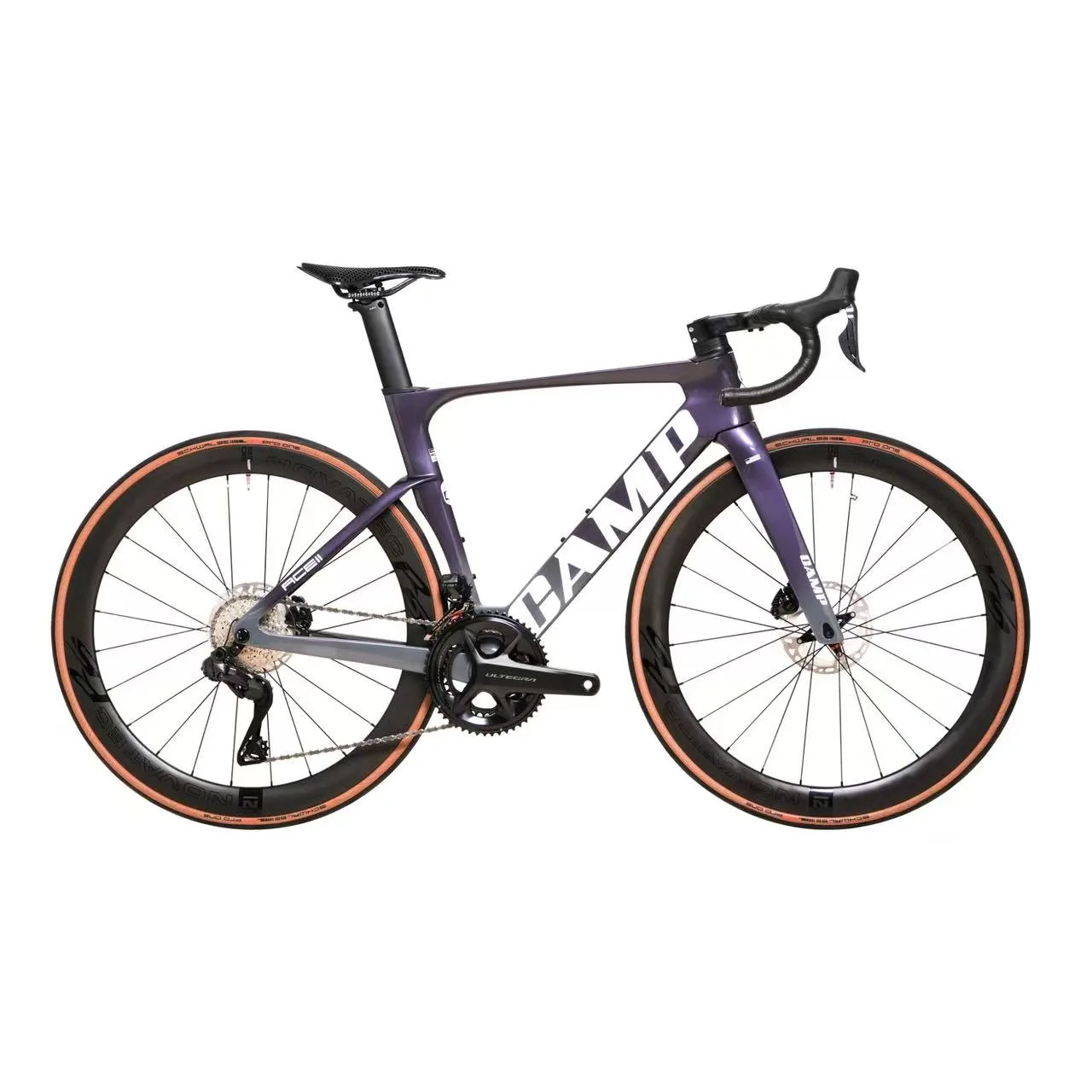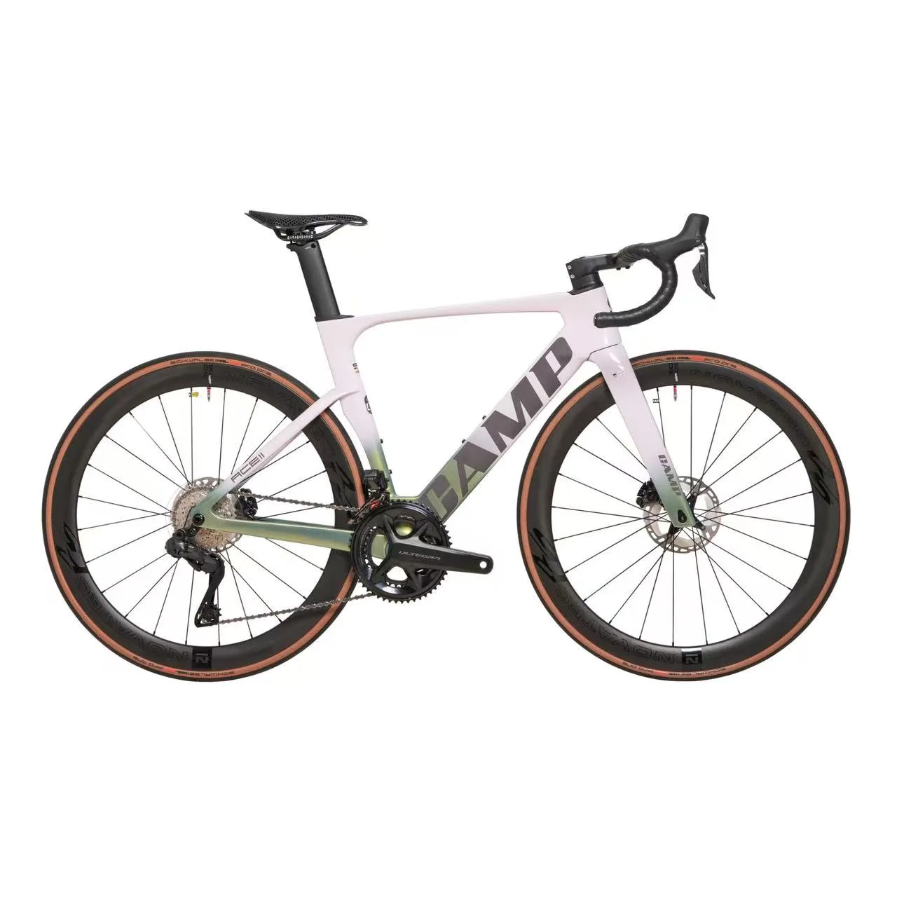 The ACE II UT delivers professional performance with its full Shimano Ultegra 8170 Di2 groupset and T1000 high-modulus carbon frame. Equipped with 50mm NOVATEC R5 PRO carbon wheels, Sapim spokes, and Schwalbe Pro One 28c tubeless tires with TPU tubes, this 7.5kg bike offers exceptional riding quality. The 3D printed carbon saddle and integrated cockpit complete this high-performance package.