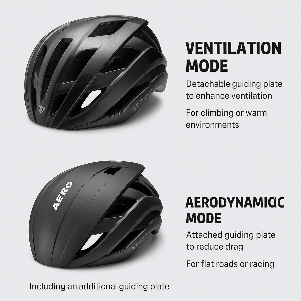 • Aerodynamic Mode – attach the aero cover to reduce drag, perfect for flat roads, sprints, and high-speed riding.